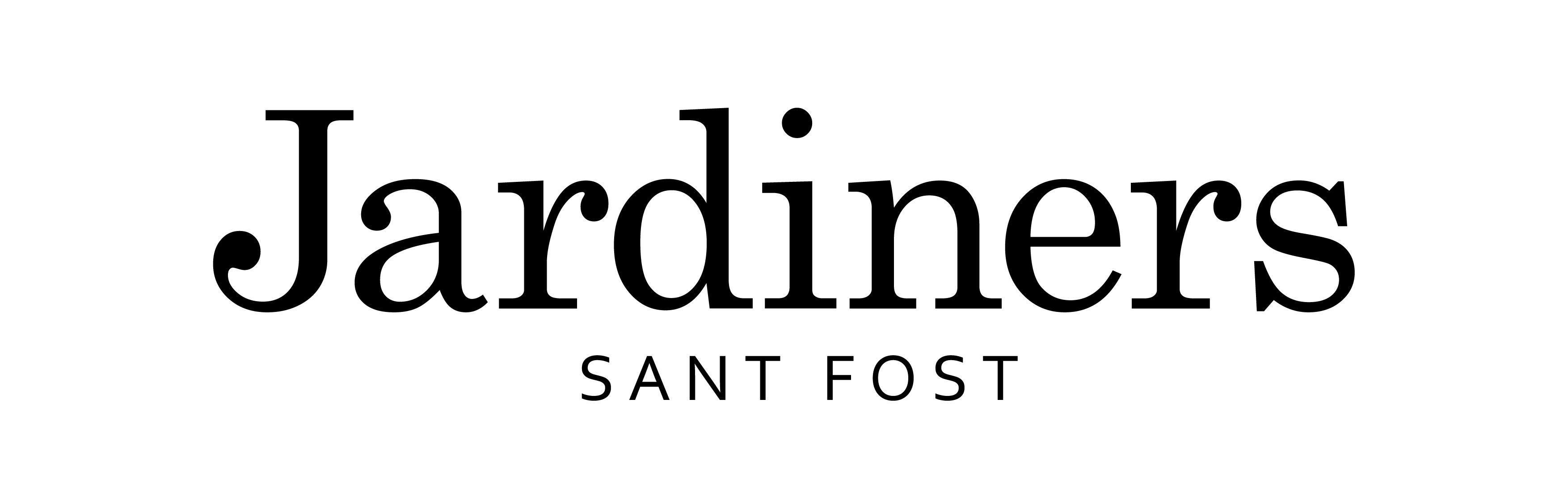 Per a la tipografia, es va optar per una combinació que reflecteix tradició i modernitat: Century Schoolbook per a “Jardiners” aporta un aire artesanal i proper, mentre que Corbel per a “Sant Fost” afegeix un toc de sofisticació i modernitat.